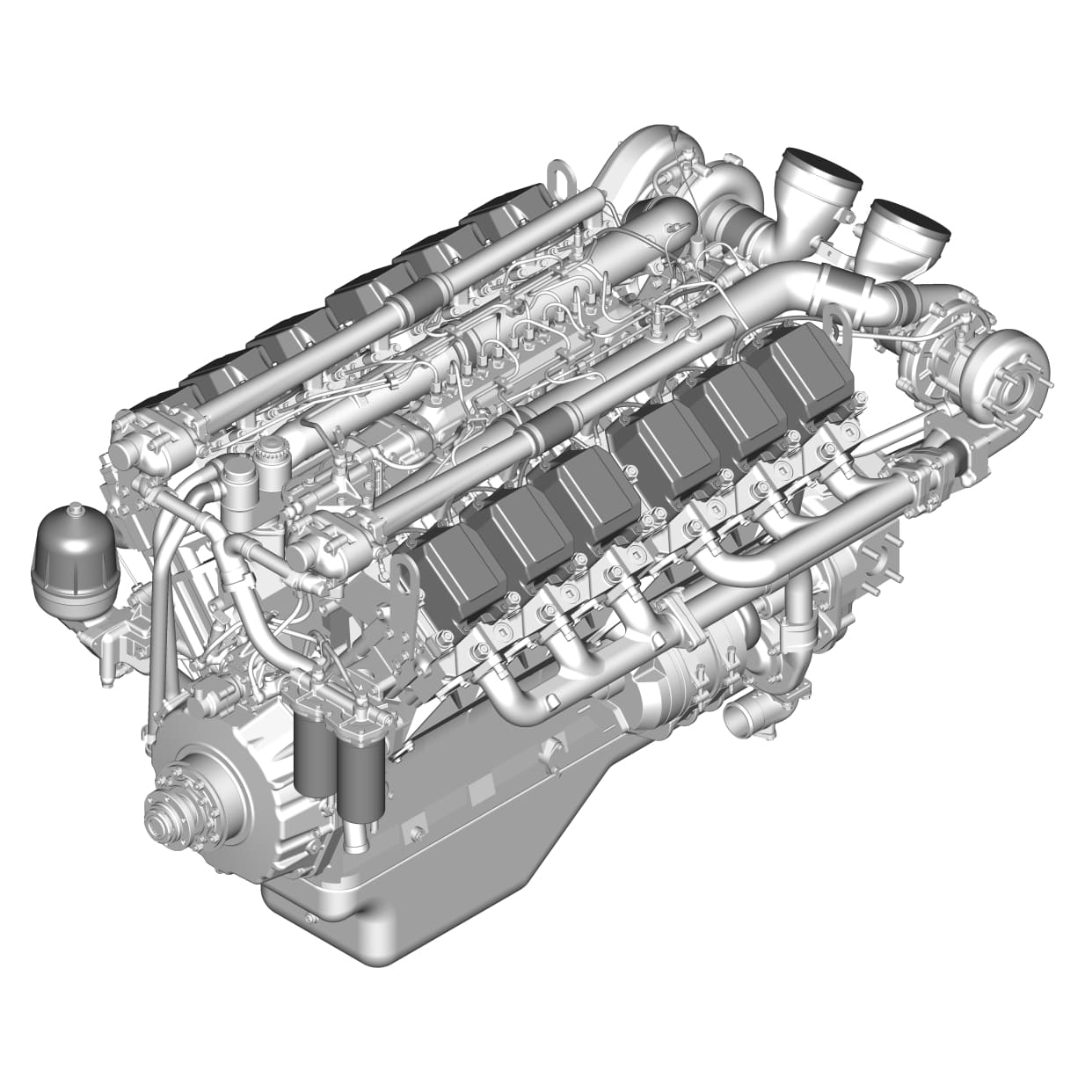 Тип двигателя: Дизельный, 4-тактный, V-образный, 12-цилиндровый, с турбонаддувом.